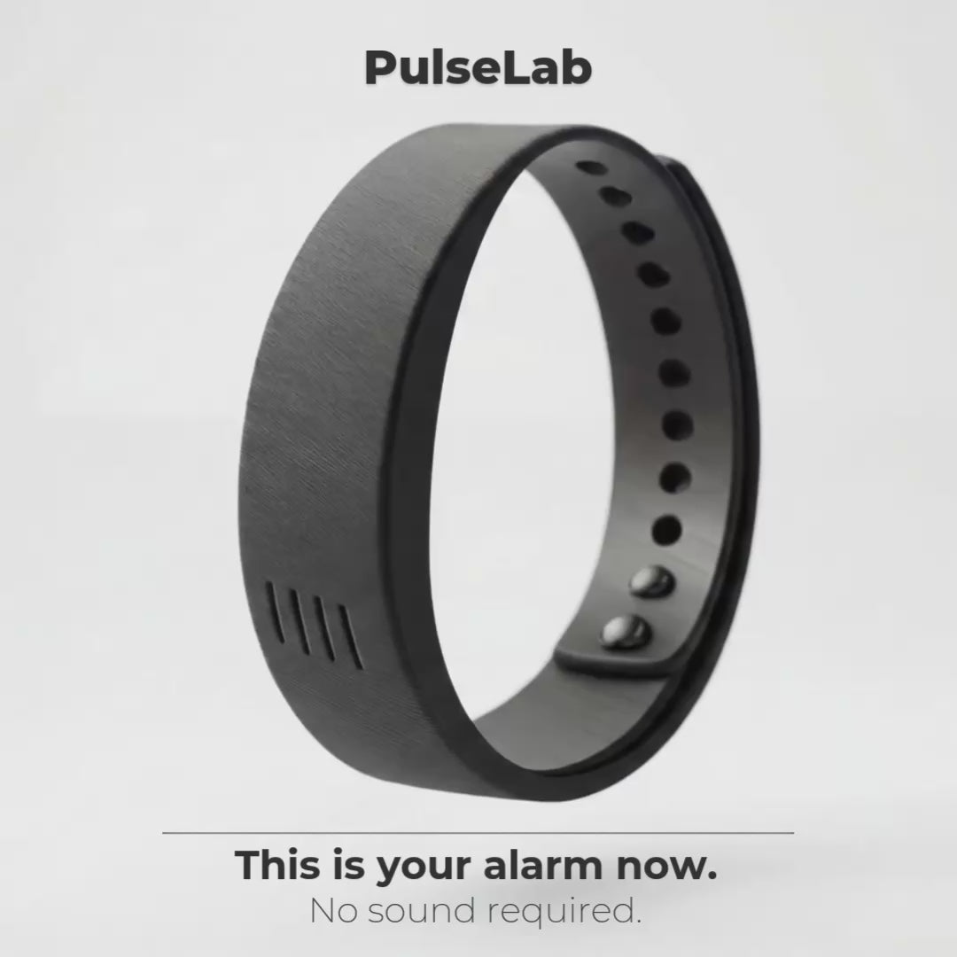 The PulseLab Wake-Up Band™ delivers a focused vibration that wakes you reliably without loud alarms or complicated tech.